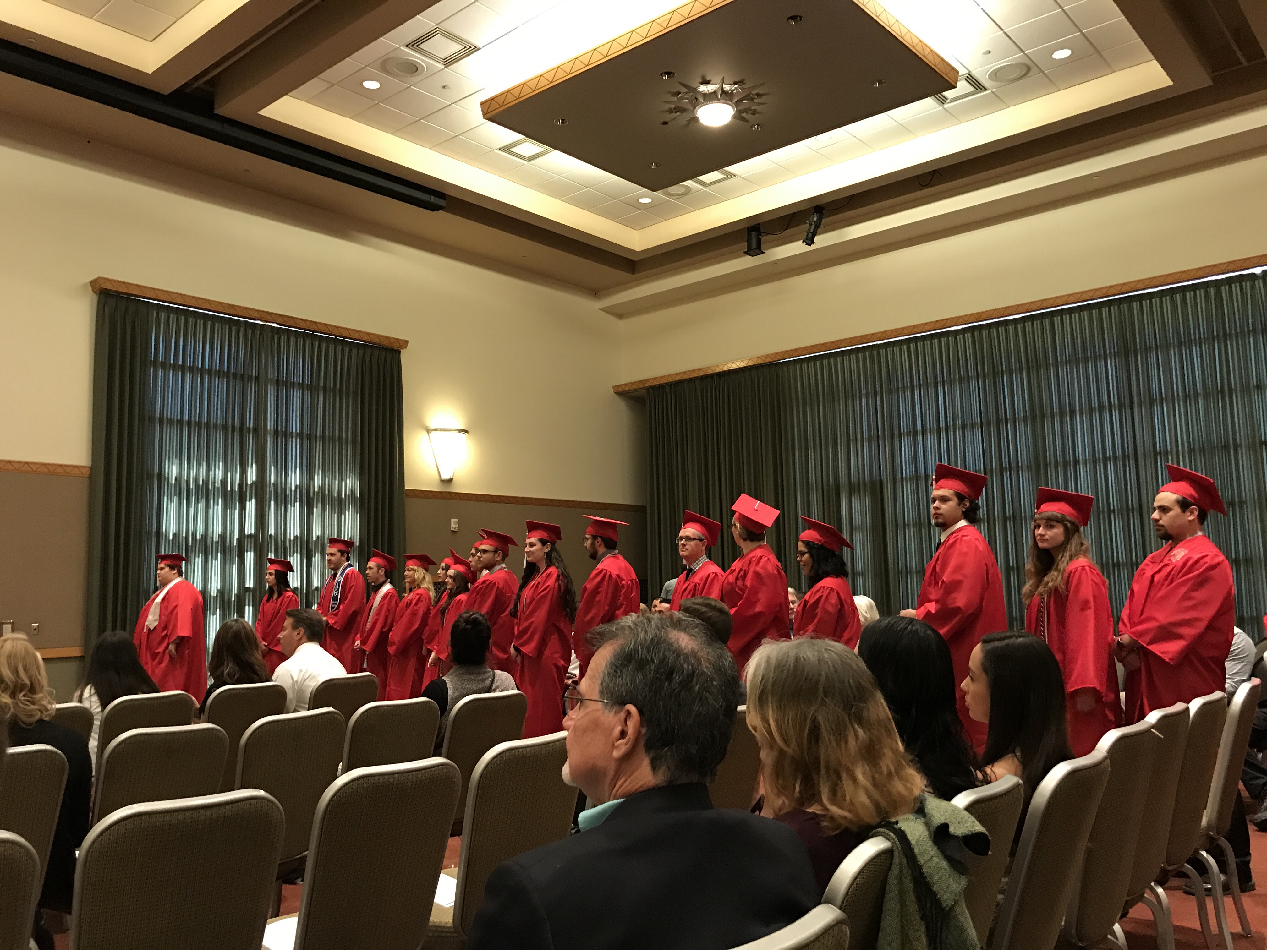 Da Danny heute seine Graduation 👨🎓 Feier hatte, war es schön, solch eine Zeremonie mal life mitzuerleben. Es war zwar nur in kleinem Rahmen, da er sich die große mit ca. 1300 Studenten nicht antuen wollte, aber es war schon schön zu sehen, wie die Studenten in ihren roten Roben aufmarschiert sind.
