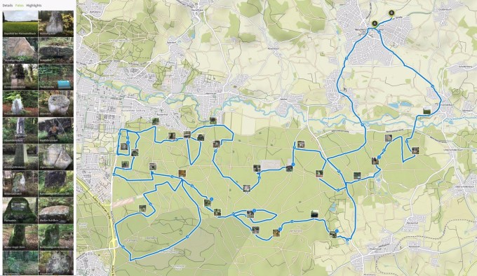 Gesagt, getan. In den folgenden Tagen hatte ich eine Strecke in Komoot ausgearbeitet, ca. 100 km lang mit ca. 680 Höhenmeter. Mit dieser Route wollte/konnte ich alle 63 Gedenksteine abfahren. Die Besonderheit, die ich in die Planung gelegt hatte, war, dass kein Teilstück doppelt befahren werden sollte.