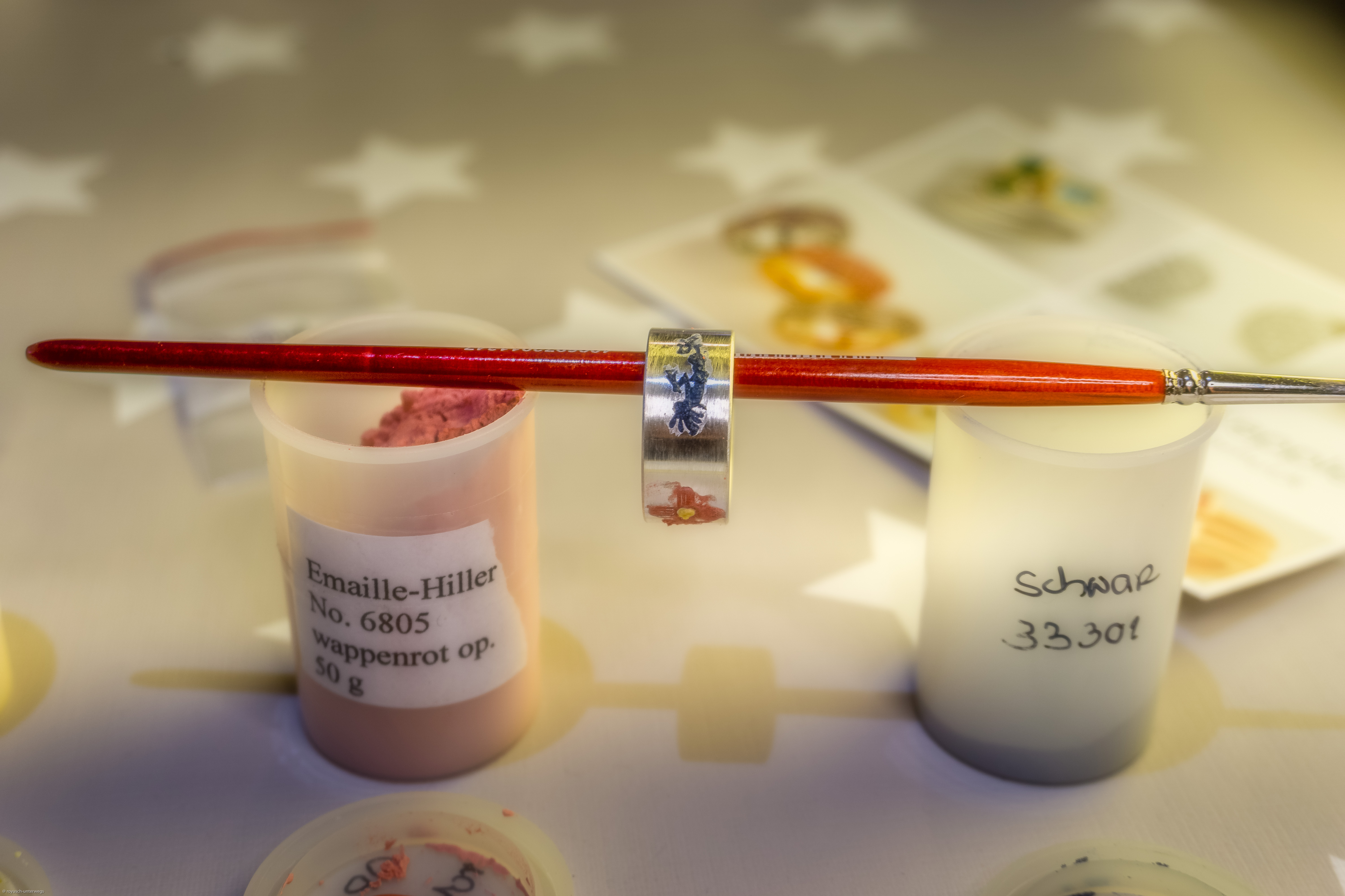 ‘Emaillier-Kurs’ Published 12. Januar 2019 at 6000 × 4000 in Emaillieren die Vierte Ring befüllt mit Farbgranulat ‹ Zurück