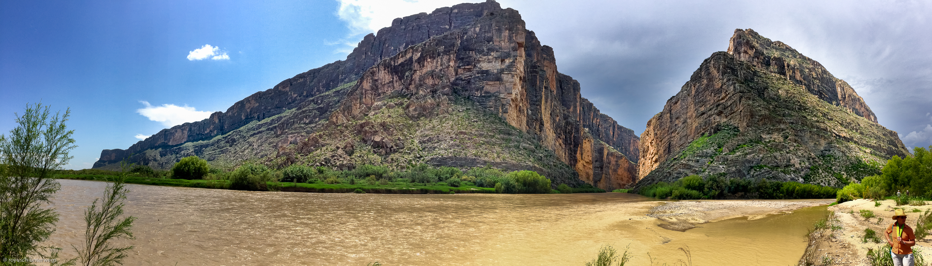 Das heutige Panoramabild zeigt den Santa Elena Canyon im Big Bend Nationalpark in Texas, USA. Die linke Seite des Canyons gehört zu Mexico, die rechte zu den USA. Der Rio Grande bildet hier die Grenze zwischen beiden Staaten.
