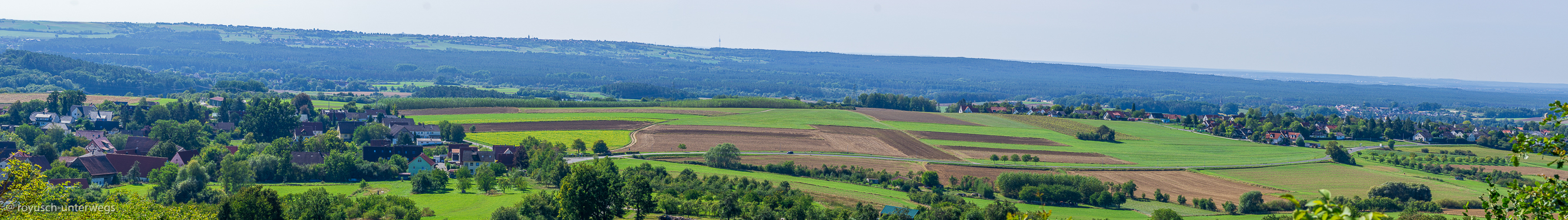 Der Weg führte mich auf dem offiziellen Wanderweg über den kleinen Bach, der aber schon seit langem ausgetrocknet ist, Richtung Lieblingsbank. Auf halbem Weg entschied ich mich aber doch noch für einen Umweg, da man von einer anderer Stelle einen sehr schönen Ausblick in die Umgebung, ja sogar bis nach Nürnberg hat.
