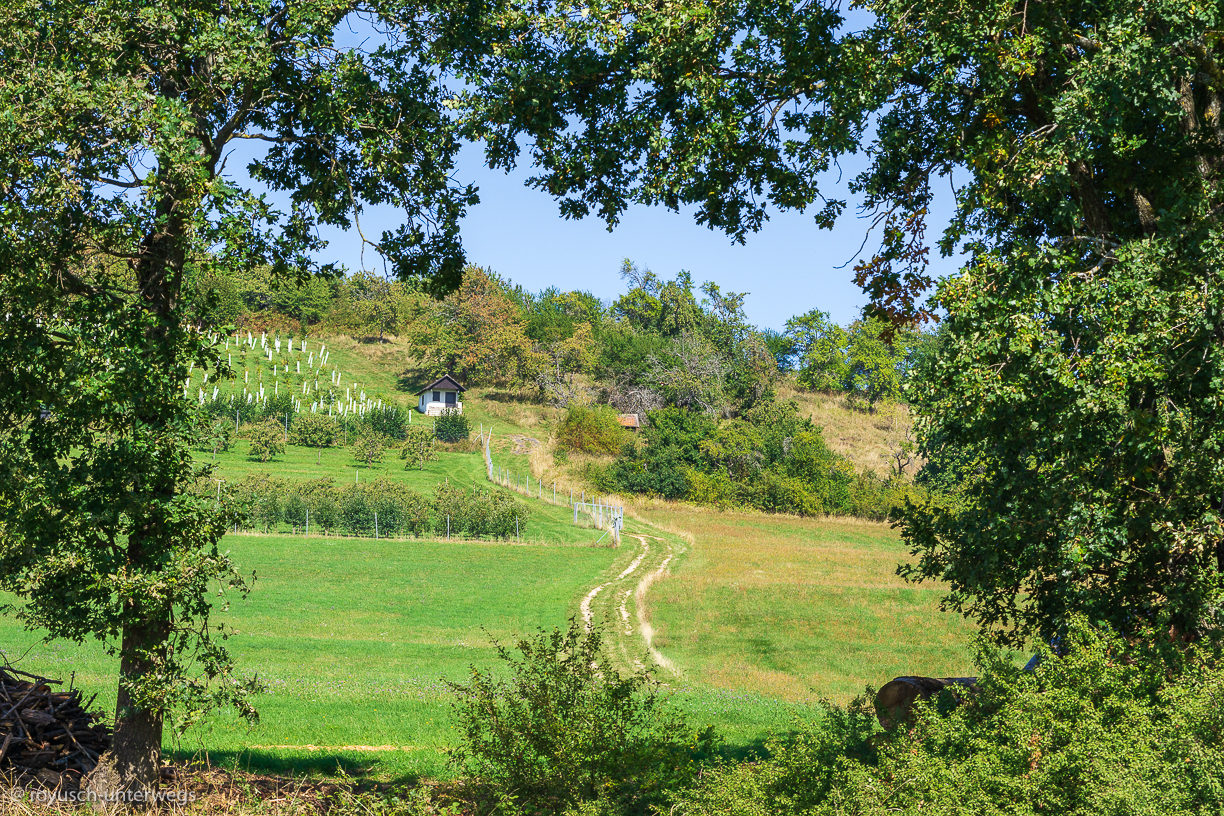3. Das war jetzt eine sehr schoene Tour! Und alles war vorhanden: Weite Felder, schoene Aussichten, das nette Gartenhaeuschen, die Insekten und die Pflanzen!