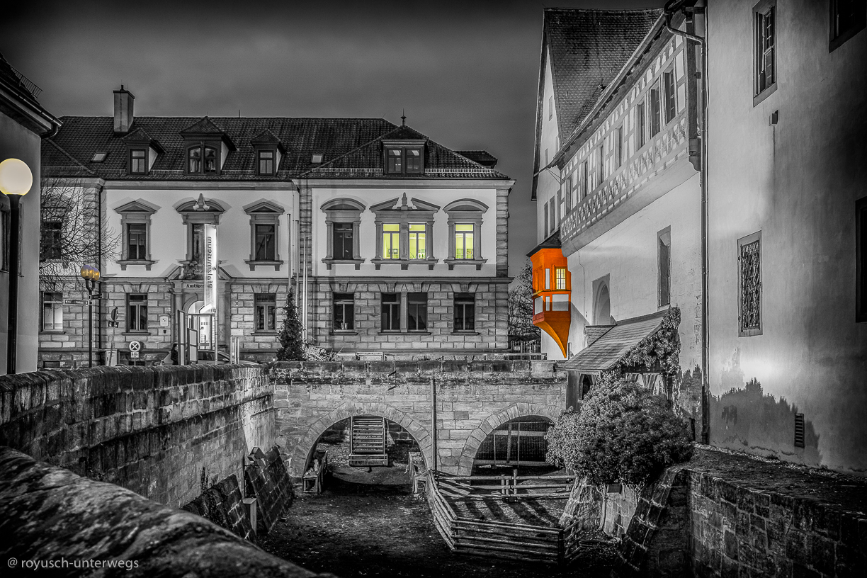 Auf den ersten Blick habe ich nur das Rot gesehen, dann noch das Gelb der erleuchteten Fenster, einen Augenblick später das orange Licht in den Laternen und ganz zum Schluss, bevor ich diese. Kommentar schon abschicken wollte, ist mir auch noch aufgefallen, dass eine andere Strassenlaterne gelblich/weiss leuchtet!