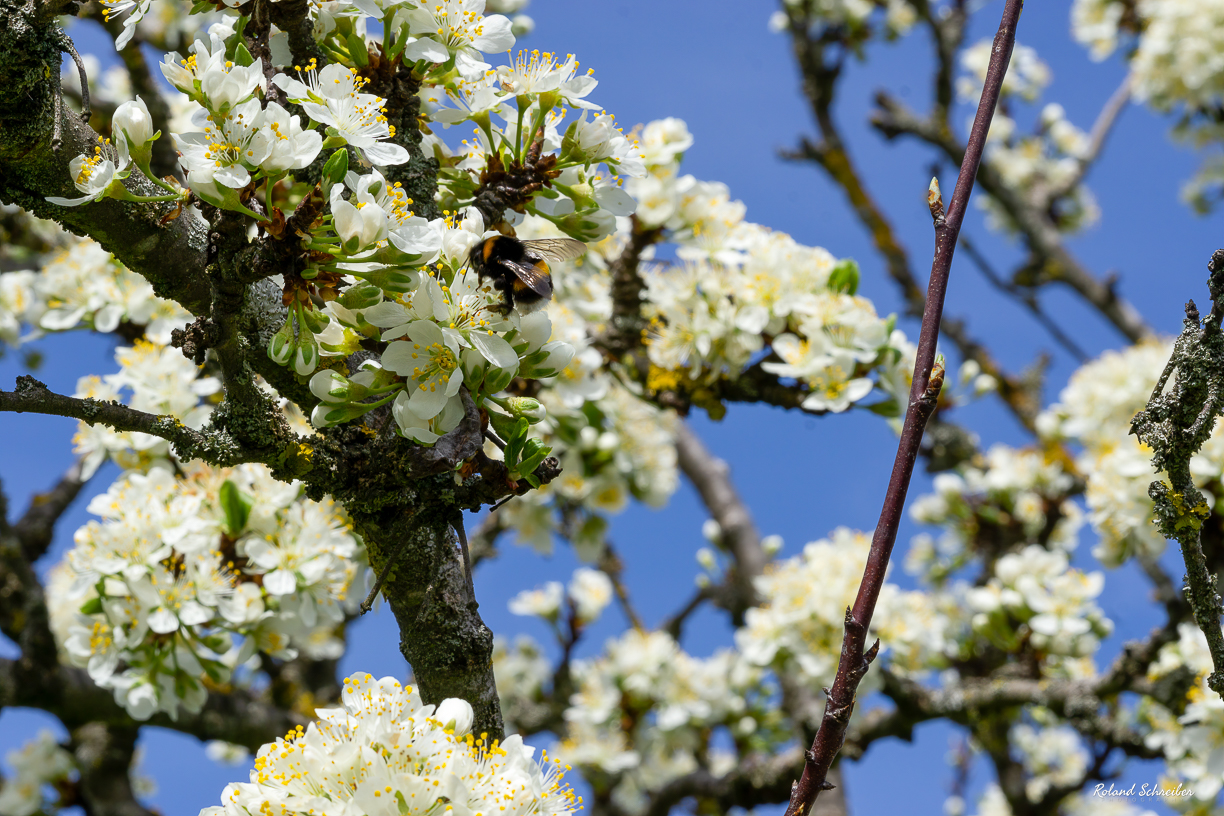 Bei herrlichstem Sonnenschein, aber kühlen Wind war ich heute mal wieder an unserem Hausberg unterwegs. Keine Menschenseele war zu sehen, so konnte ich in aller Ruhe die Natur genießen und auch ein ausgiebiges Päuschen auf meiner Lieblingsbank genießen. Eigentlich wollte ich ja ein paar Bäume und Sträucher fotografieren, die z. Zt. in voller Blüte stehen, aber dann wurde ich durch diverse Tiere abgelenkt und habe meinen Fokus mehr auf diese gelegt. Einige Blütenbilder gab es natürlich auch noch, aber die werde ich dann in einen separaten Beitrag zeigen.