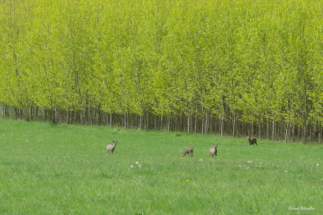 das sind wunderbare Aufnahmen. Also mir sind die Bilder scharf genug. Ich lege da nicht so große Maßstäbe an wie du. Rehe konnte ich noch nicht fotografieren. Wenn ich mal welche sehe, sind sie zu weit weg. Was ist der hellgrüne Fleck auf dem Panoramabild? Sind das Bäume?