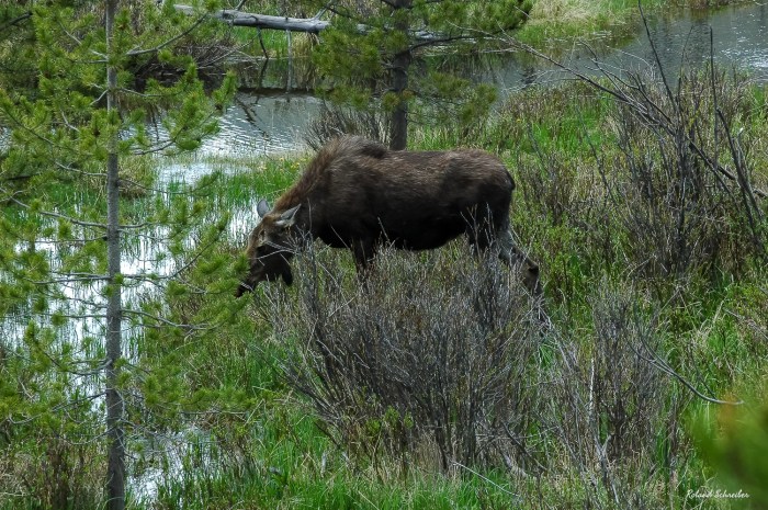 Nach einer kleinen Pause, ging es wieder hinunter Richtung Grand Lake über die Trail Ridge Road in das Kawuneeche Valley. Hier hatten wir dann noch mal das Glück Elche in freier Wildbahn zu sehen. Es war schon beeindruckend zu sehen, wie groß diese Tiere sind, aber auch das sie sich nicht durch die Touristen vom Fressen stören lassen. Das führt dann auch zu schönen Bildern, wie ich meine.