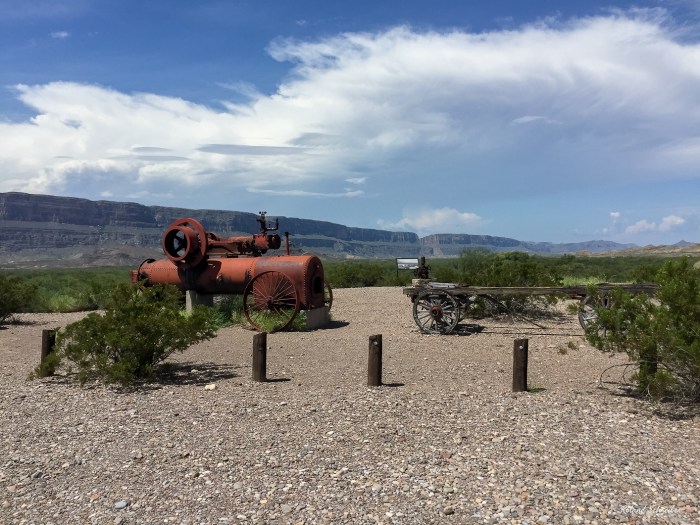 Der Santa Elena Canyon ist ziemlich weit von der Chisos Basin Lodge entfernt. Am besten erreicht man ihn über den ca. 50 Kilometer langen Ross Maxwell Scenic Drive. Die Straße ist teilweise sehr kurvig und auch sehr steil und was noch „viel schlimmer ist“, es gibt zahlreiche interessante Stops, wie z.B. die Sam Mail Ranch, der Solo Vista Overlook, die Homer Wilson Ranch und und und. Mit allem Drum und Dran, brauchten wir etwa 4 Std. bis wir Castolon Visitor Center erreicht hatten. Von dort aus sind es dann nur noch wenige Kilometer.