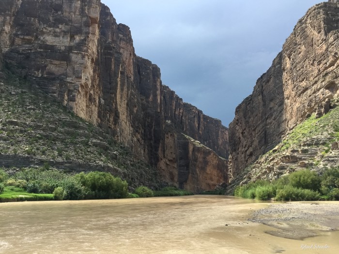 Leider hatten wir mit dem Wetter etwas Pech, so dass es uns nicht möglich war, in den Canyon hinein zu gehen. Es gibt einen Trail der in den Canyon führt. Dazu muss man aber erst einen Nebenfluss des Rio Grande, den Terlingua Creek überqueren, der während eines Großteils des Jahre trocken ist. Zu unserer Zeit führte er zu viel Wasser und die zu überquerende Sandbank war vollkommen „übermatscht“. Es wäre zu gefährlich gewesen, es dennoch zu probieren. Schade, aber wenn es so ist, dann ist es so.
