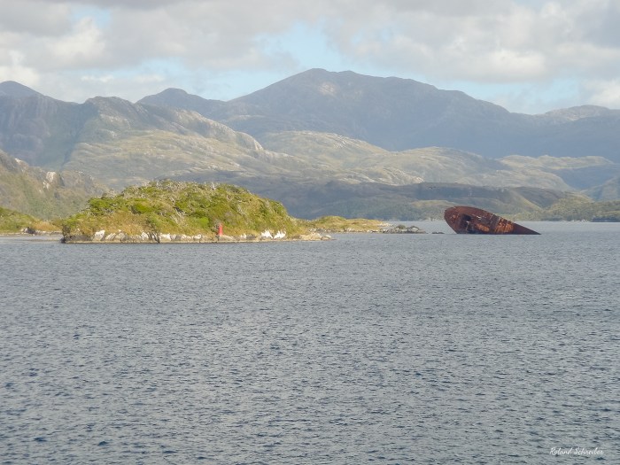 Impression aus der Magellan Straße. Hier hat es wohl einer nicht geschafft und ist vor längerer Zeit auf Grund gelaufen.