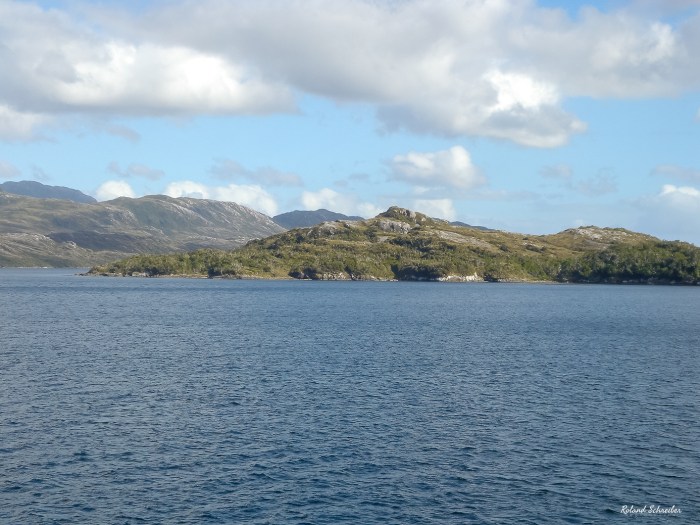 Na ja und dann ging es auch schon in die Magellan Straße. Die Magellanstraße ist eine Meerenge mit zahlreichen Inseln und Seitenarmen zwischen dem südamerikanischen Festland und südlichen Inseln, vornehmlich der Insel Feuerland. Sie verbindet nördlich Südamerikas Südspitze den Atlantischen mit dem Pazifischen Ozean. Die Magellanstraße ist von Ost nach West 330 nautische Meilen (= ca. 611 km) lang, zwischen 1080 m und 28 m tief und an ihrer schmalsten Stelle (beim Paso Tortuoso) etwas mehr als 2 km breit. Seit dem Grenzvertrag zwischen Chile und Argentinien von 1881 gehört die Magellanstraße zum chilenischen Hoheitsgebiet.