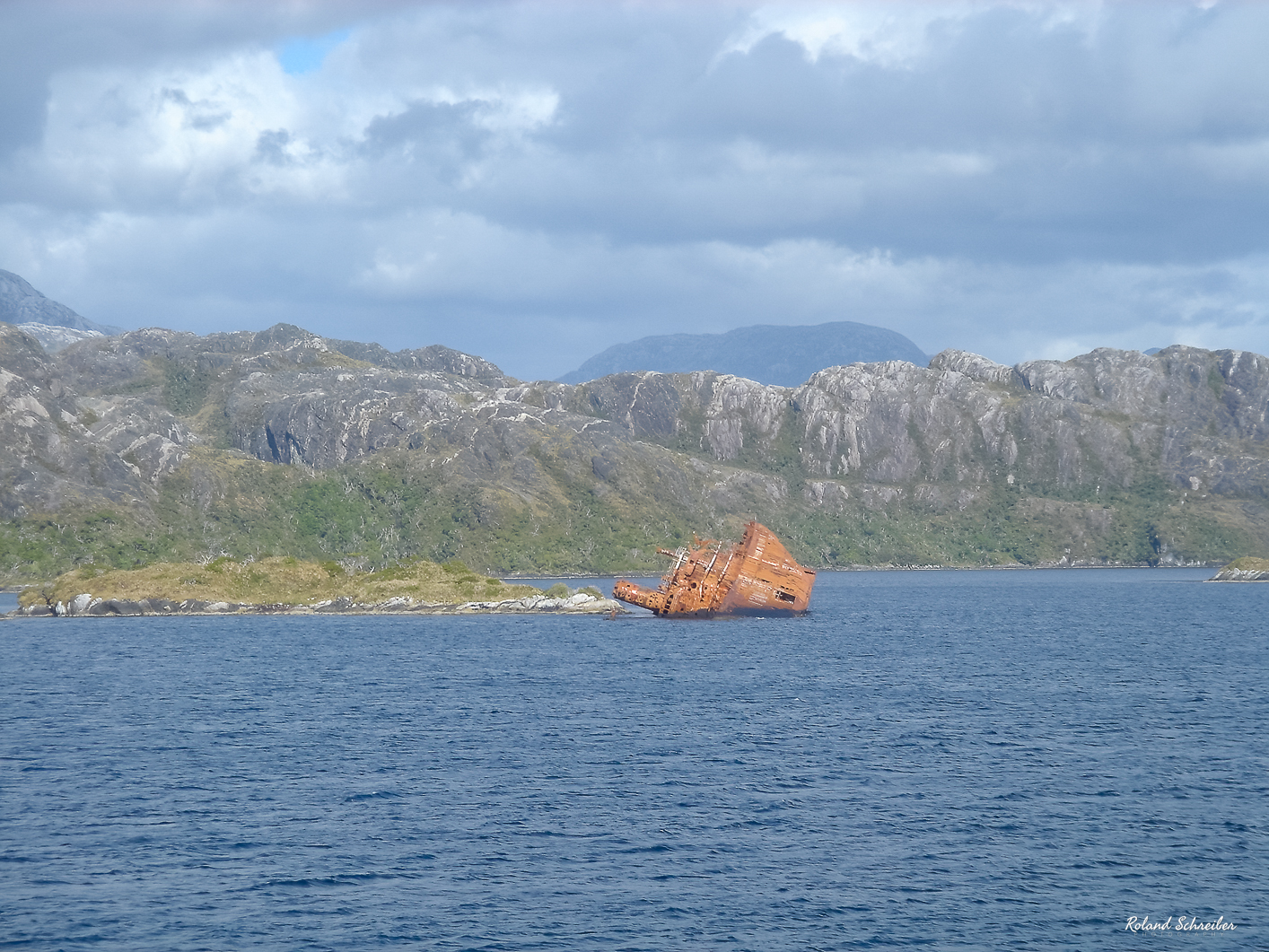 Impression aus der Magellan Straße. Hier hat es wohl einer nicht geschafft und ist vor längerer Zeit auf Grund gelaufen.
