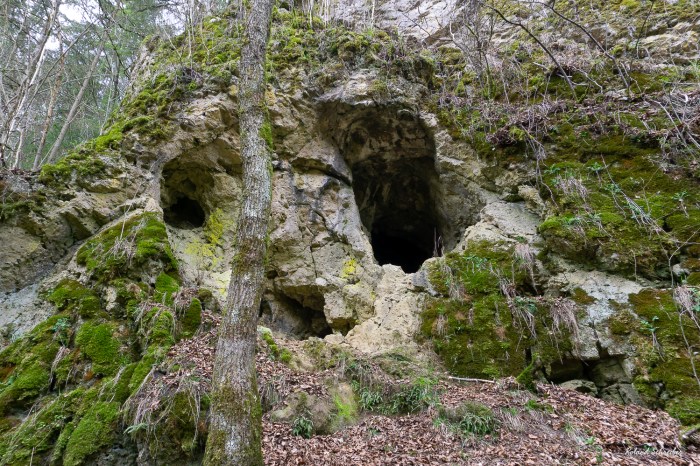 Das Fuchsloch ist eine Karsthöhle mit mehreren Nebeneingängen. Das Hauptloch ist mit etwas Kletterei gut zugänglich. Die ersten Meter sind noch stehend zu überbrücken, dann geht es aber nur noch in der Hocke oder kriechend weiter, was ich aber nicht gemacht habe. Auf jeden Fall sollte man eine Taschenlampe dabei haben.