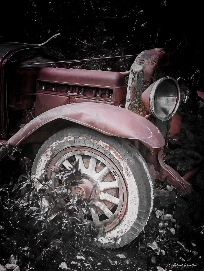 Eine Sache möchte ich aber noch anmerken. Diese Art von Bildern schwebte mir schon seit langem im Kopf herum. Da es bei uns in Deutschland aber so gut wie unmöglich ist, solche Autos zu finden, da ja immer alles gleich auf dem Schrottplatz endet, habe ich meine Stieftochter in den USA gebeten, sollte sie mal wieder unterwegs sein und auf solche Auto stoßen, mir doch ein Bild zu schicken. Was sie dann auch gemacht hat. Dafür bin ich ihr auch sehr dankbar. Somit brauchte ich nur noch das Original entsprechend anzupassen.