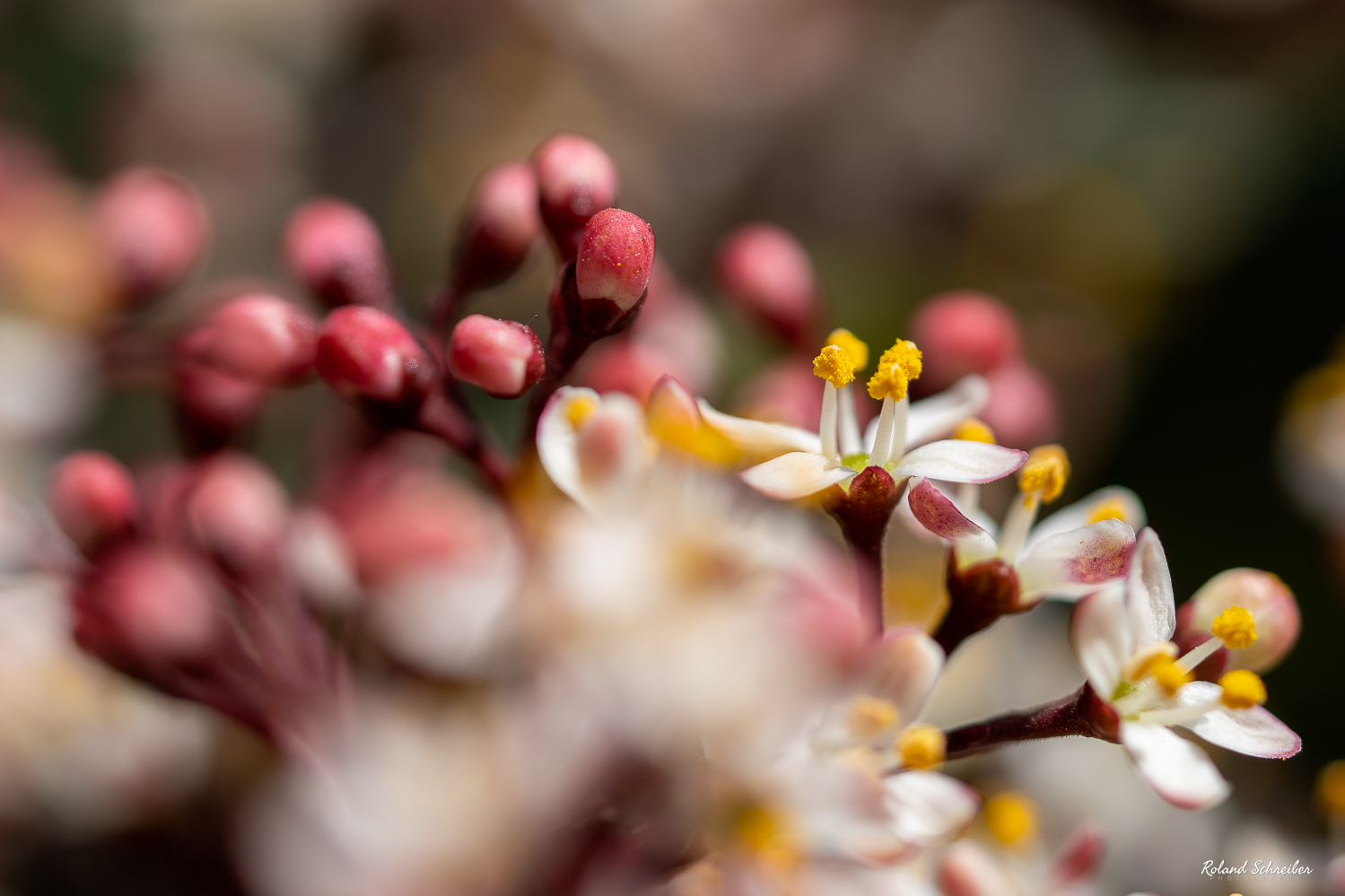 Auf der einen Seite war es ein Schreibfehler, es muss nämlich „Skimmia“ heißen und hier ein Auszug aus Wikipedia: Skimmia japonica ist eine in Ostasien heimische Pflanzenart aus der Gattung der Skimmien (Skimmia) in der Familie der Rautengewächse (Rutaceae). Vor allem eine Vielzahl an Zuchtformen dieser Art sind beliebte Zierpflanzen. Sie wächst bei uns im Eingangsbereich.