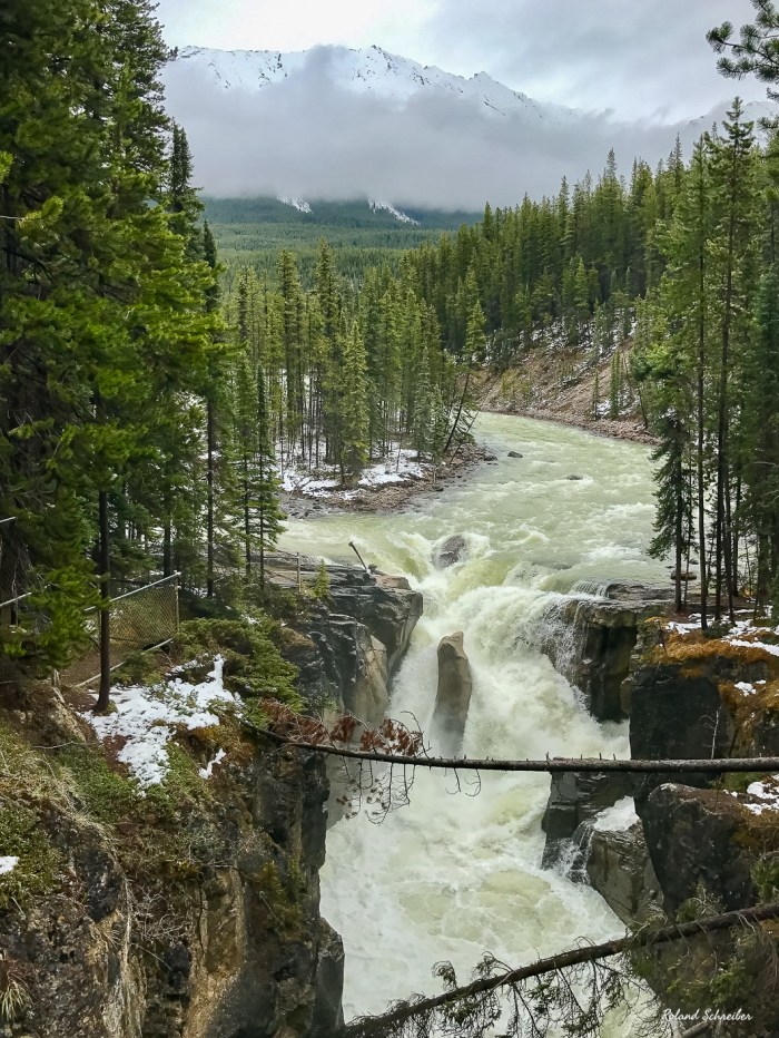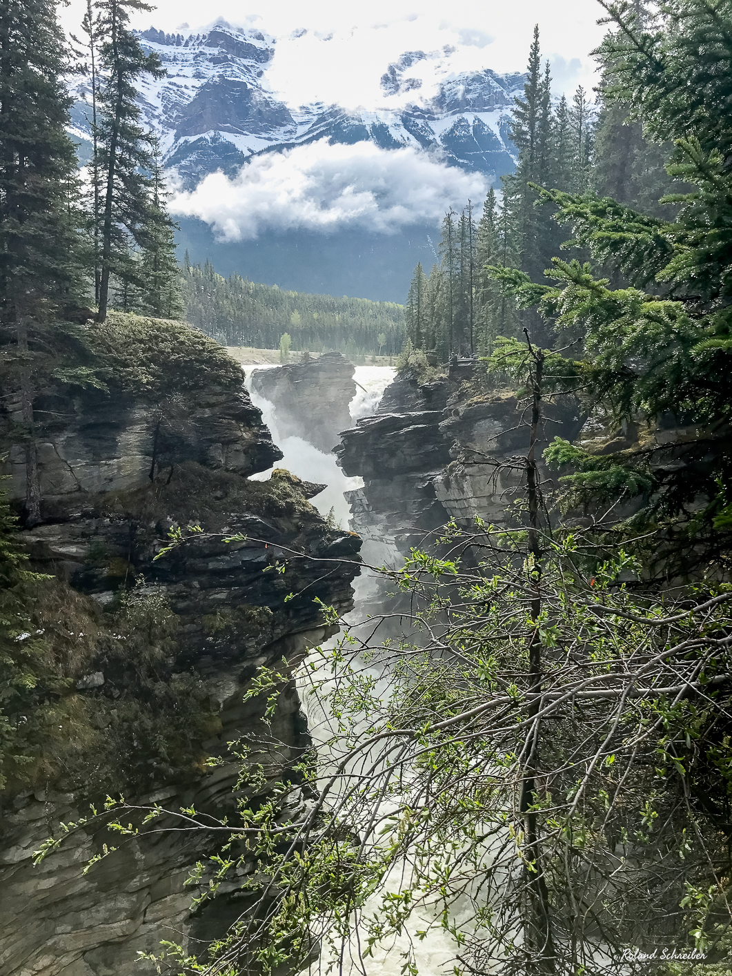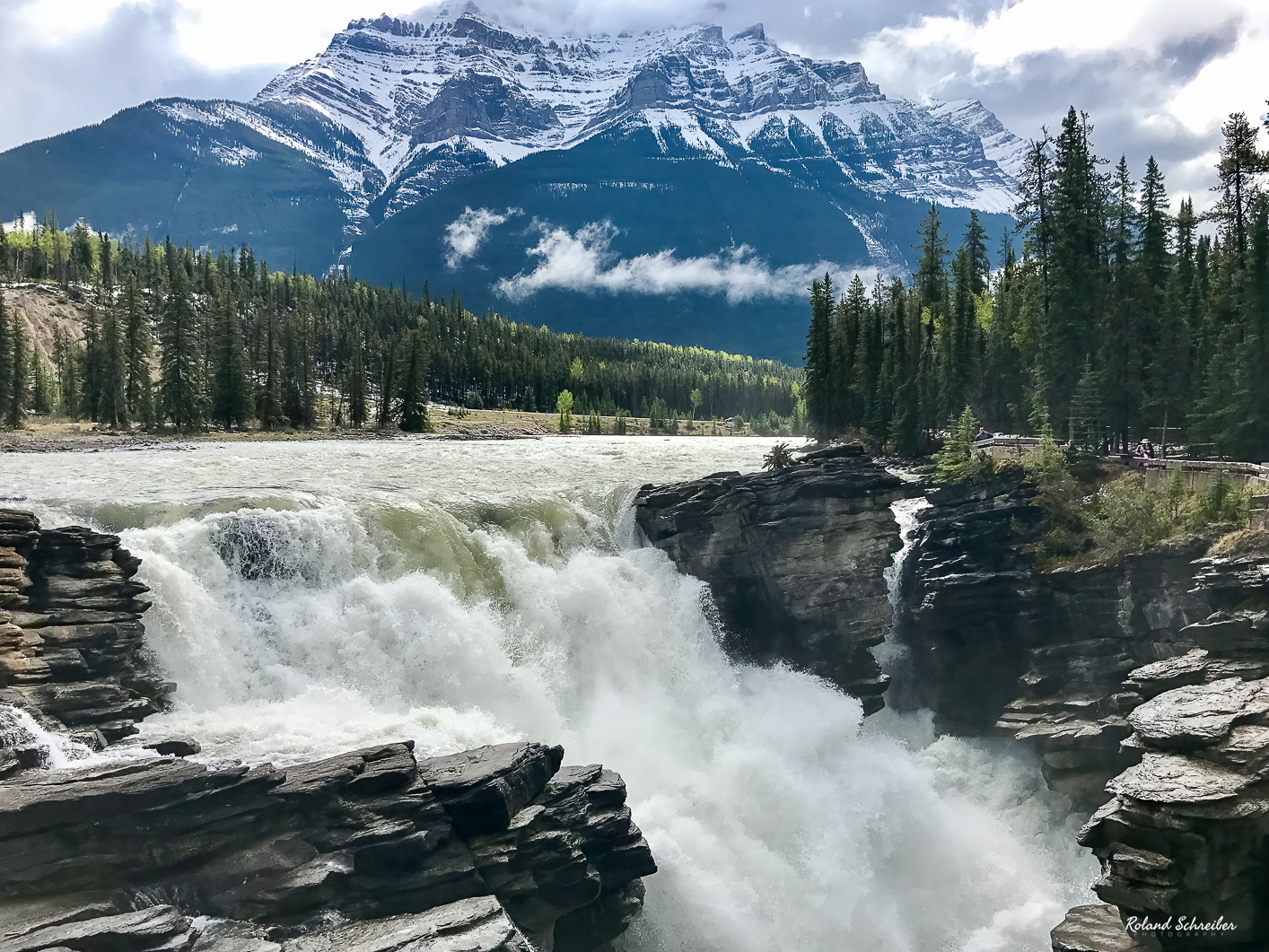 Wie schön sich im Lake Moraine die Berge spiegeln! Lange Zeit hatte ich mal davon geträumt, im Fairmont Chateau am Lake Louise zu nächtigen, daraus ist dann aber leider nichts geworden. 😉 Die Athabasca Falls sind schon sehr beeindruckend…