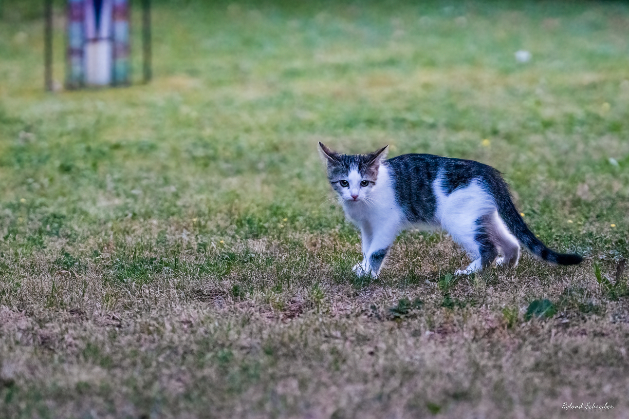 Gestern Abend (daher sind die Bilder etwas dunkler) durfte sie, nach zweiwöchiger Eingewöhnungszeit endlich mal raus, während meine Frau beim Gartengießen war. War das eine Freude und so viele neue Sachen und Gerüche waren zu entdecken. Austoben war angesagt und danach konnte man sich vor Müdigkeit kaum noch auf den Beinen halten.