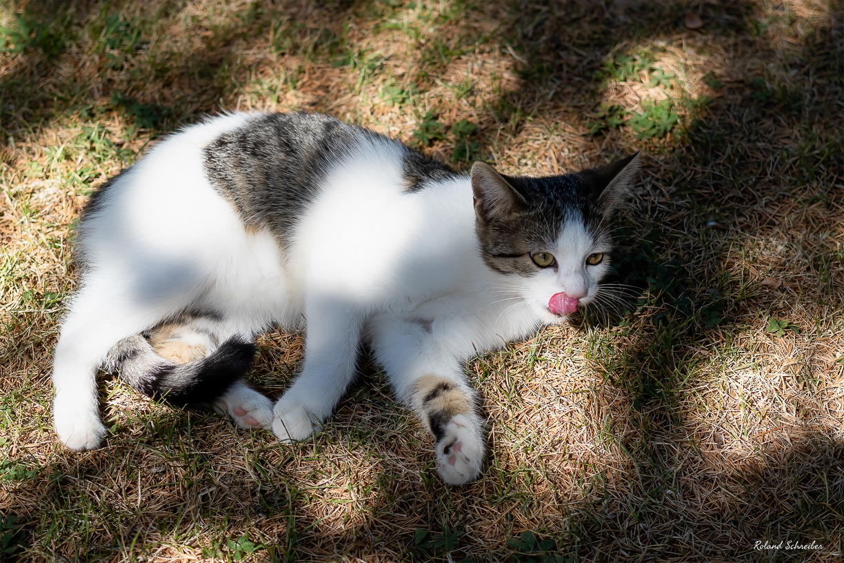 1. Schönes Katzenfoto mit den „Lichtflecken von den Bäumen“ die es interessant machen.