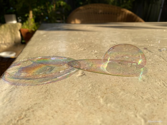 Diese Seifenblase hat ca. 10 min gehalten