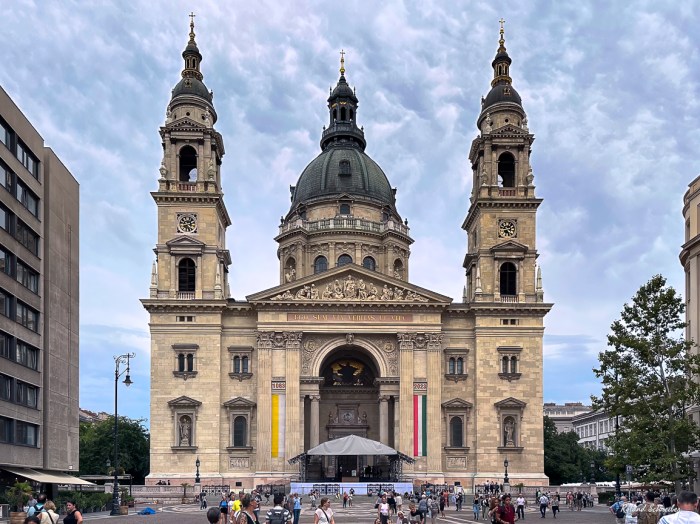 Unser nächster Stop sollte bei der St. – Stephans – Basilika sein. Sie wurde von 1867 bis 1906 im neoklassizistischen gebaut. Ihre Kuppel ist 96 m hoch; sie stürzte 1868 ein und zerstörte das damals halbfertige Bauwerk. Im Innern finden bis zu 8500 Menschen Platz. Die in der Nähe der Kettenbrücke befindliche Kirche ist dem ersten christlichen ungarischen König Stephan gewidmet.