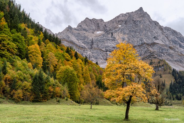 Wir waren im Oktober 2018 dort, leider nur für einen Tagesausflug. Aber ich fand es auch regelrecht berauschend, vor allem das Zusammenspiel aus weitem, recht „platten“ Ahornboden und den mächtigen Berggipfeln rundum.