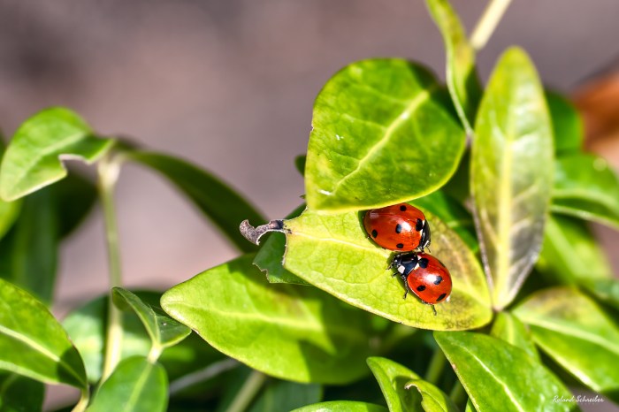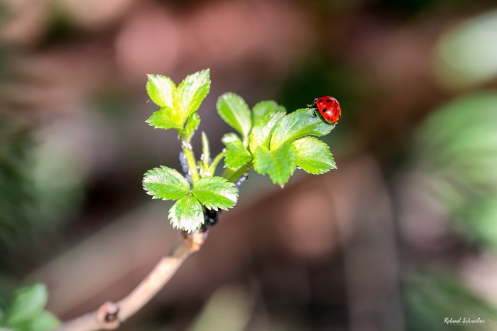 Dieses Jahr scheint das Jahr der Marienkäfer zu werden, lieber Roland und diese kleinen gepunkteten roten Glücksbringer sind, wie hier im Licht der Frühlingssonne von dir im Bild so schön festgehalten, auch bei mir sehr gerne gesehene Bewohner im Garten.😊 Auch wenn sie später an den Rosen sowie anderen besonders hübschen Blumen ihre „Blattlausfarm“ zum melken der Läuse aufbauen, was den Pflanzen im Laufe der Zeit nicht wirklich gut tut. 😉