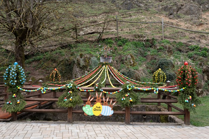 Osterbrunnen…ich muss gestehen, ich komm ja aus Köln, ich kenn das hier ehrlich gesagt nicht und höre zum ersten Mal von diesem Brauch. Da hab ich mal wieder was dazugelernt. Und auch wenn ich beinharter Atheist bin: Allen schöne Feiertage! 🙂