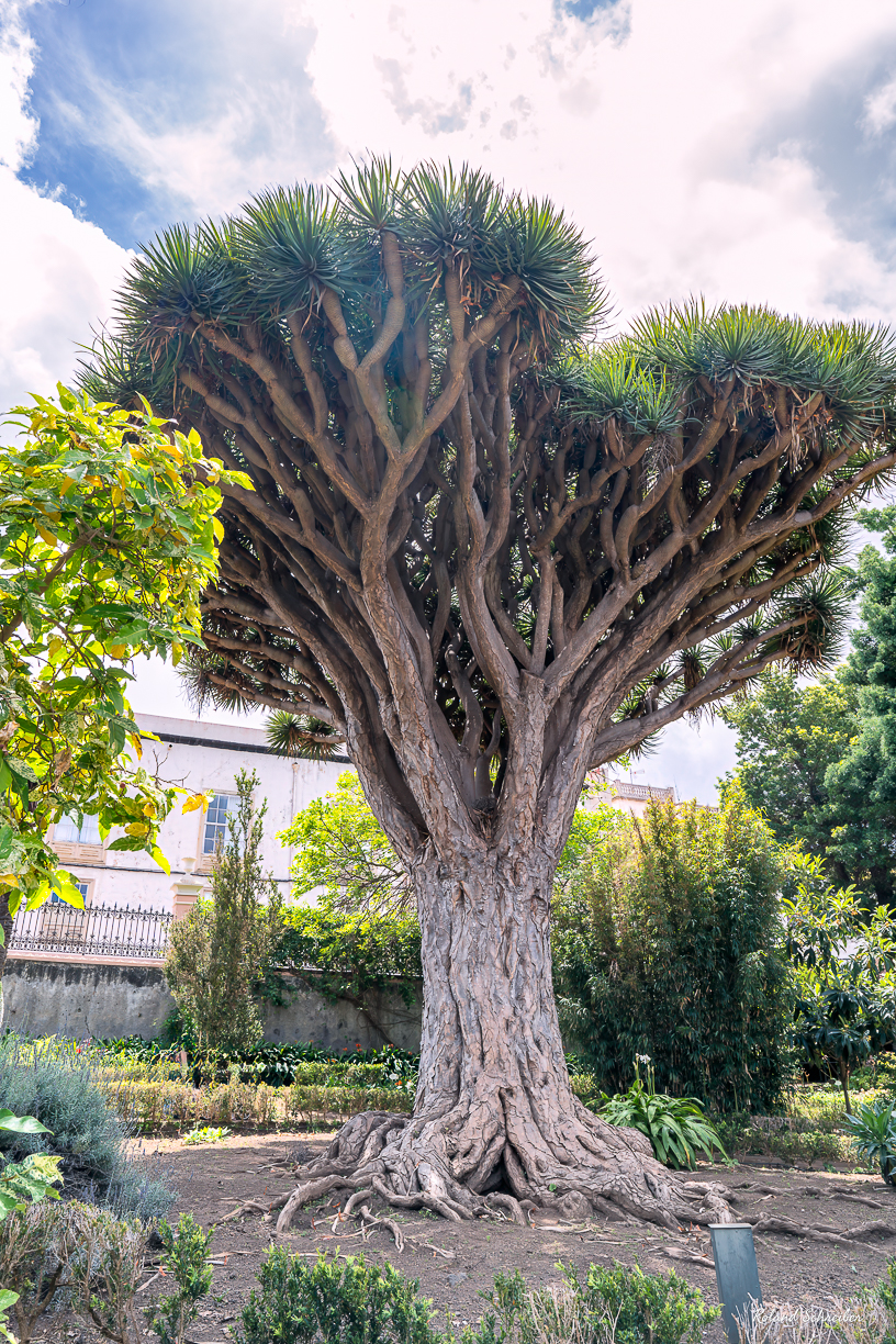 Vom Jardin Victoria ging es über die Strasse, direkt zum Botanischen Garten. 1895 musste ein Nonnenkloster dem Neubau des Rathauses Platz machen, aber der Klostergarten dahinter blieb erhalten und trägt heute den hübschen Namen Hijuela del Botánico (Töchterchen des botanischen Gartens) und ist exotisch bepflanzt. Heraus ragt dort ein wohlgeformter kleiner Drachenbaum.
