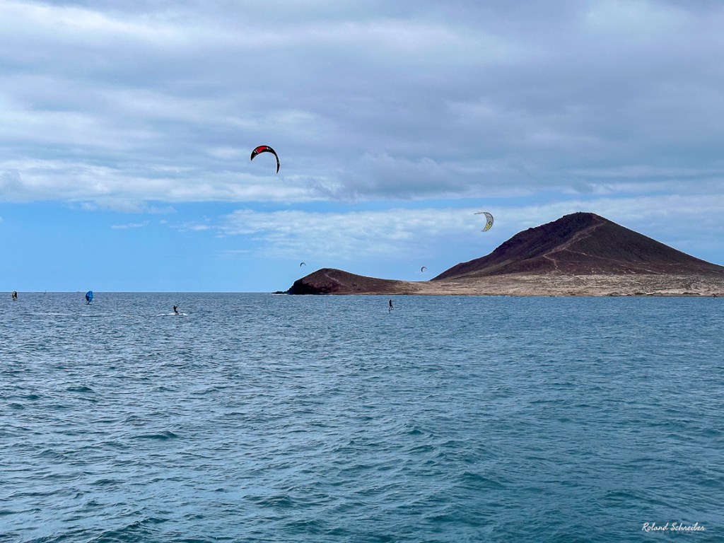 Da wir jetzt schon ein paar Tage auf Teneriffa waren aber noch nicht direkt am Meer, haben wir uns auf dem Rückweg nach San Miguel für einen Abstecher nach El Médano entschieden. El Médano, ein kleines Städtchen an der Südküste und nur ein Steinwurf entfernt von Teneriffas Süd-Flughafen hat schon bessere Zeiten erlebt. Seit dieser 1978 fertig gestellt wurde und der Jetlärm hinüberdröhnt, stagniert die Entwicklung. Zumal an 290 Tagen im Jahr die, in dieser Ecke der Insel, vorherrschende steife Briese störte. Für Wind- und Kitesurfer ist gerade diese Windsicherheit ideal. Im Winter gibt es europaweit keine vergleichbar gute Bedingungen fürs Training und Meisterschaften.
