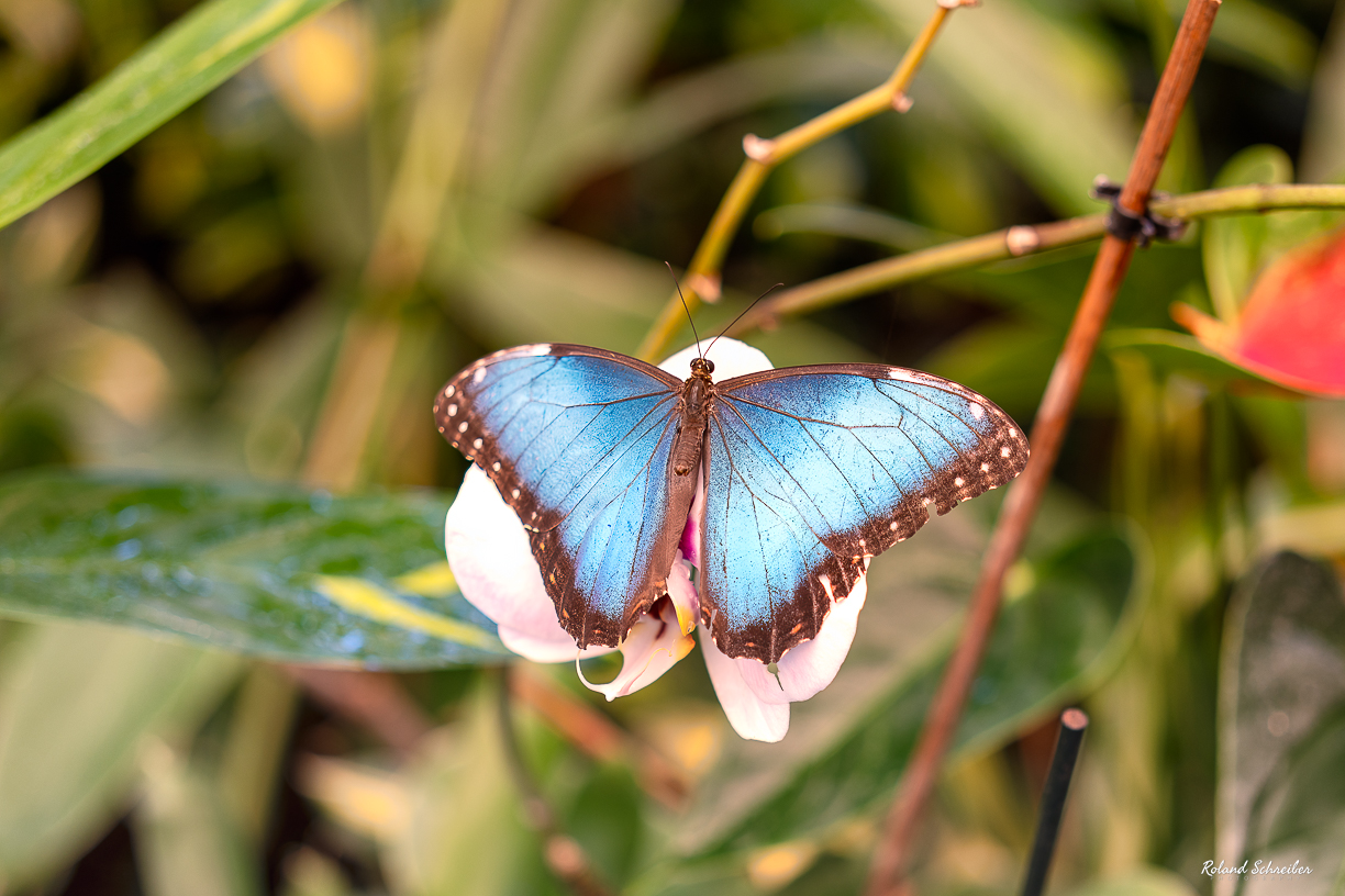 Morpho pheleides; der Blaue Morphofalter oder Himmelsfalter
