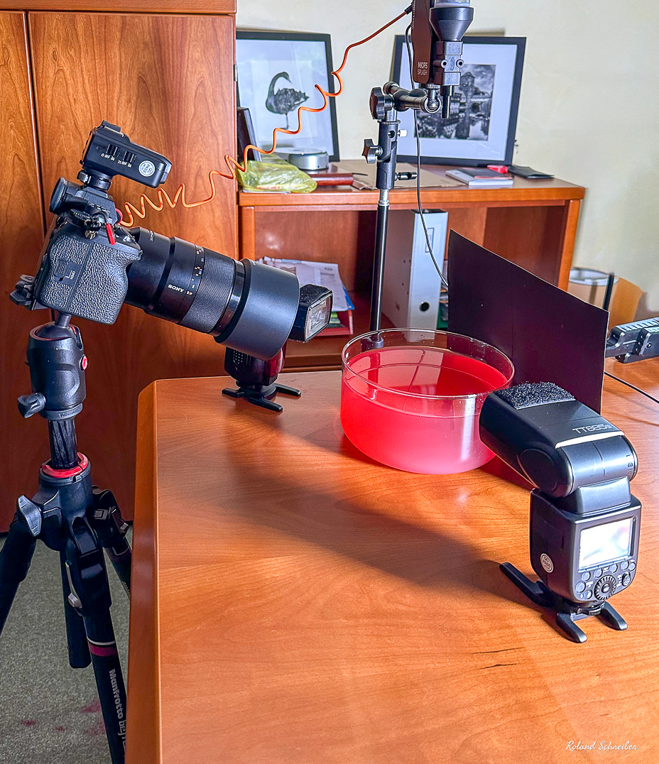 2. Das sind ja wieder spektakuläre Bilder – sowohl die Tropfenbilder selber, als auch das Foto vom Aufbau!
