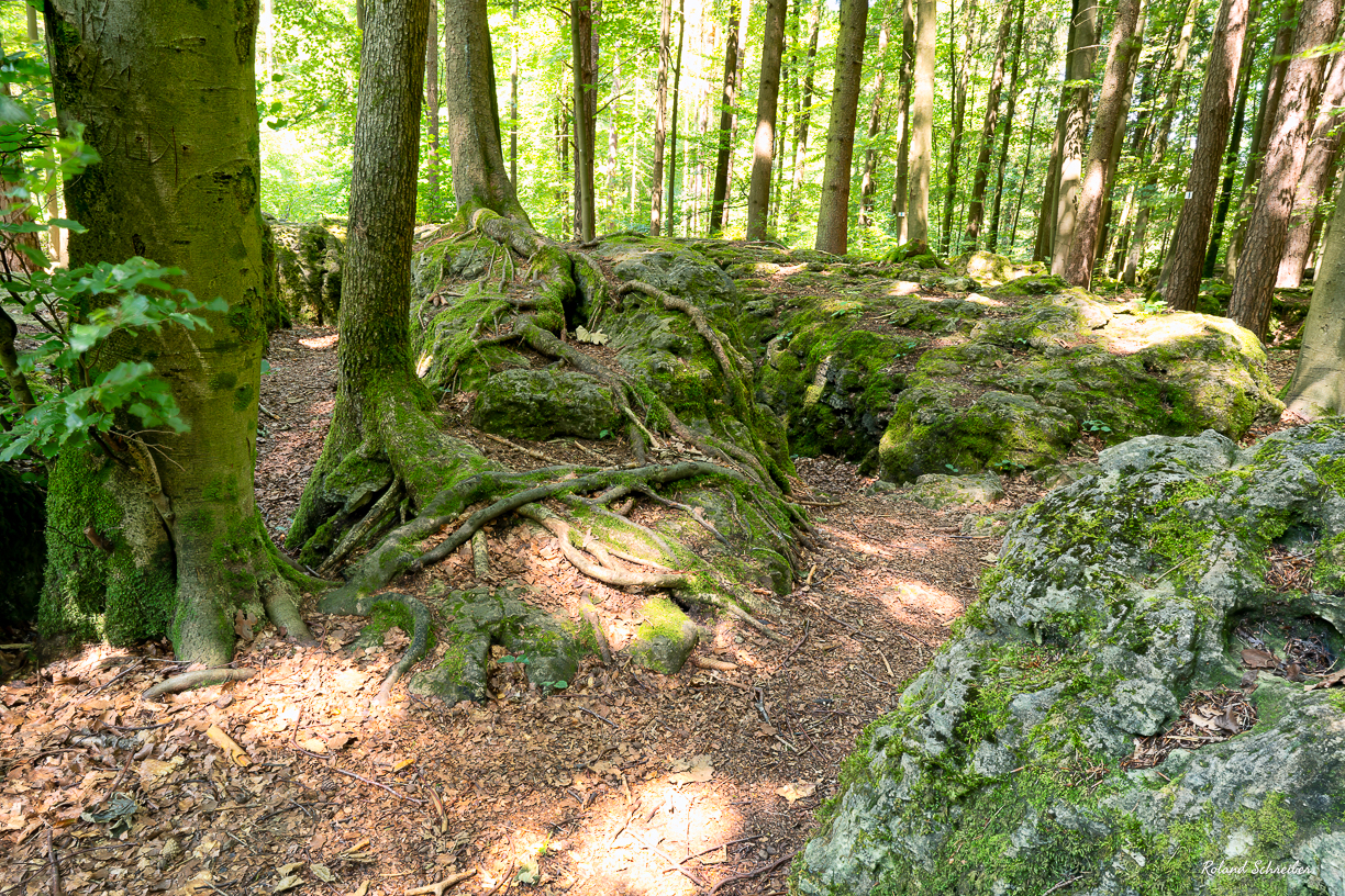 Während meines Besuches von „Stonehenge in der Fränkischen Schweiz“ letzte Woche, kam mir wieder der Druidenhain in den Sinn. Ich hatte ihn schon mal erwähnt, während eines Fotoprojektes vor ein paar Jahren. Leider durfte damals nur ein Foto veröffentlich werden. Daher möchte ich heute nochmal darauf zurückkommen und euch ein paar Bilder, die ich Anfang der Woche von diesem mystischen, aber auch sehr interessanten Ort gemacht habe, zeigen.