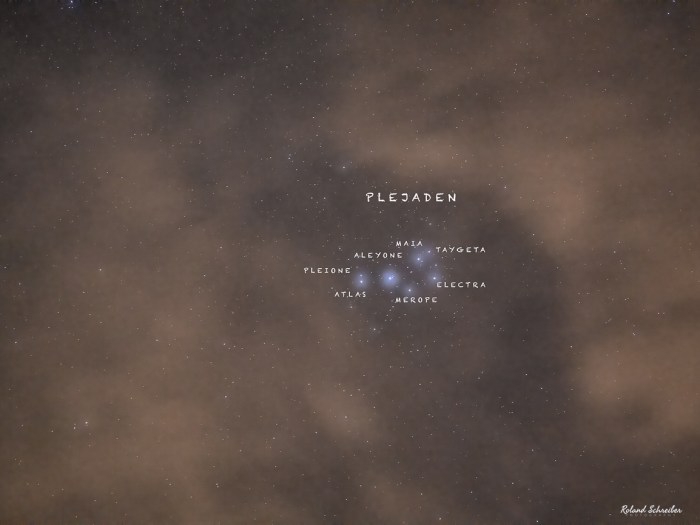 Da die Plejaden bereits lange vor Erfindung des Teleskops als Sterngruppe bekannt waren, werden traditionell auch oft nur die hellsten Hauptsterne als Plejaden bezeichnet. In manchen Kulturen und historischen Darstellungen werden nur sechs Sterne zu den Plejaden gerechnet. Der Grund dafür ist Pleione, der ein veränderlicher Stern ist. Weitere Informationen zu den Plejaden findet ihr hier.