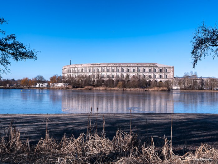 Für mich persönlich war der schönste Anblick, über den Dutzendteich hinüber zum Kongresshalle. Die Kongresshalle ist – nach Prora – der zweitgrößte erhaltene nationalsozialistische Monumentalbau in Deutschland und steht unter Denkmalschutz. Die Halle war als Kongresszentrum für die NSDAP mit Platz für 50.000 Menschen geplant. Von der vorgesehenen Höhe von rund 70 Metern wurden nur 39 erreicht.
