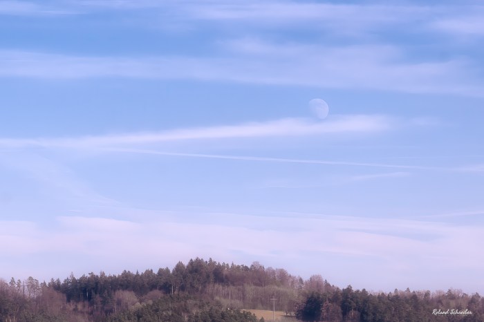 3. Das Bild vom Mond finde ich toll! Der Mond auf einer Landebahn oder hervorgehoben durch den Wolkenstreifen .