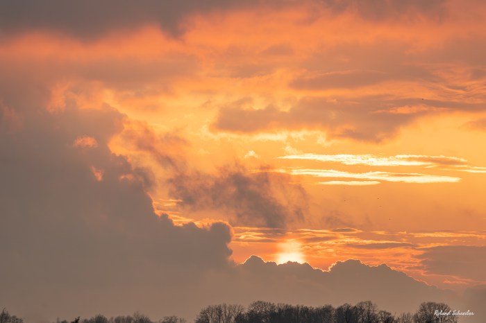 Hey, sieht doch toll aus! Ein Sonnenuntergang ohne Wolken ist doch manchmal richtig langweilig, oder nicht? Wobei Schneeschauer müsste ich auch nicht haben, bei uns war diese Woche Dauerregen angesagt…