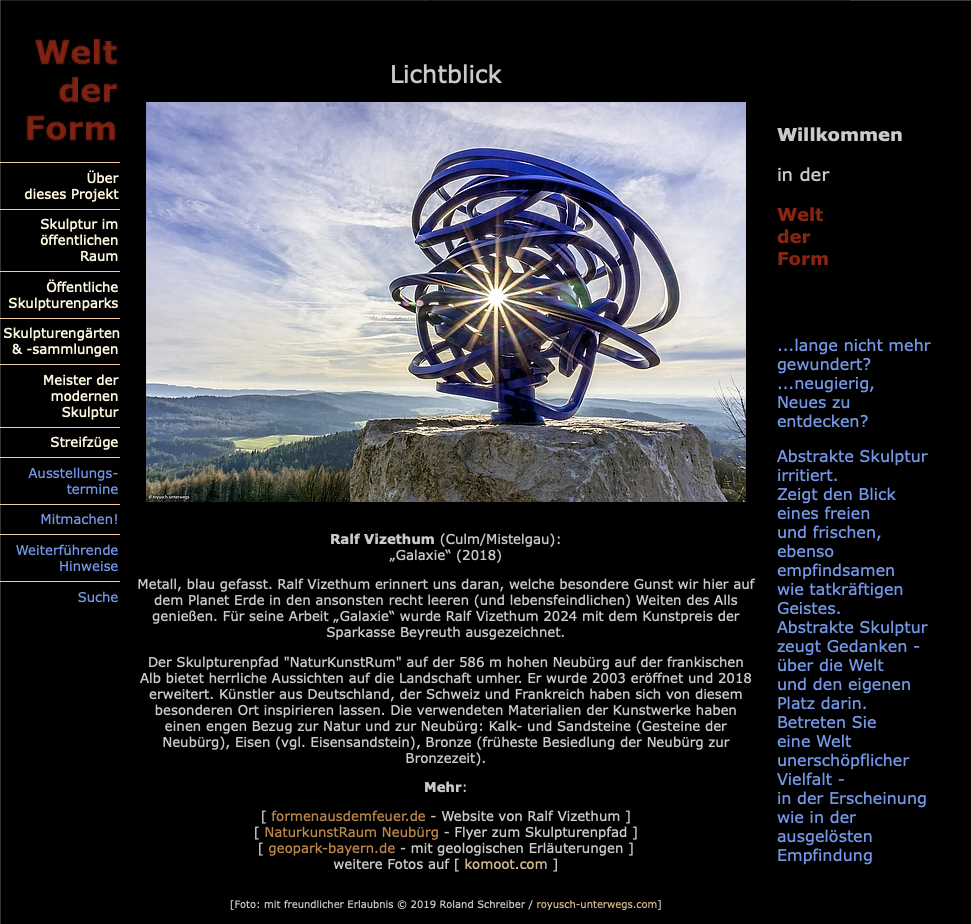 Hier jetzt ein Bildschirmfoto von“Welt der Form“ mit meinem Bild, welches ich im Rahmen einer kleinen Wanderung unter dem Motto „NaturKunstRaum Neubürg“ aufgenommen habe.