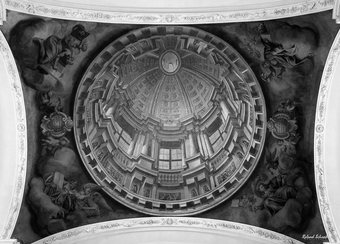 Hier also mein SW-Bild für das Black & White Fotoprojekt 2025 – Juli von CZOCZO. Die Aufnahme zeigt das Deckengemälde der kath. Kirche St. Martin in Bamberg.