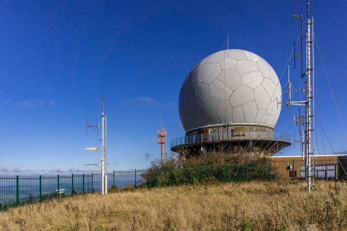 Hier jetzt mein erstes Bild: Die ehemalige Radarkuppel („Radom“) auf dem Gipfel der Wasserkuppe ist eine weithin sichtbare Landmarke. Früher streng bewachtes Militärisches Sperrgebiet, kann das Areal heute von Jedermann besucht werden. Der Rundlauf um die Kuppel ist Hessens höchste Aussichtsplattform.